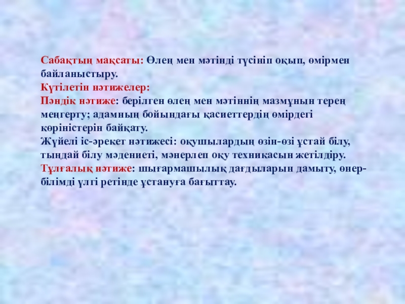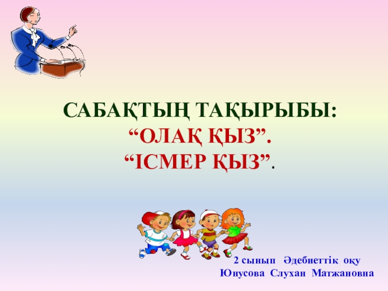 Жаңа сабақ. Балалар, «Олақ қыз» деген мәтінге назар аударайық. Біз олақ қызбен танысамыз.