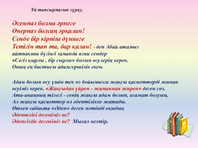 Тетігін тап та, бар қалан! - деп Абай атамыз айтпақшы бүгінгі заманда яғни сендер