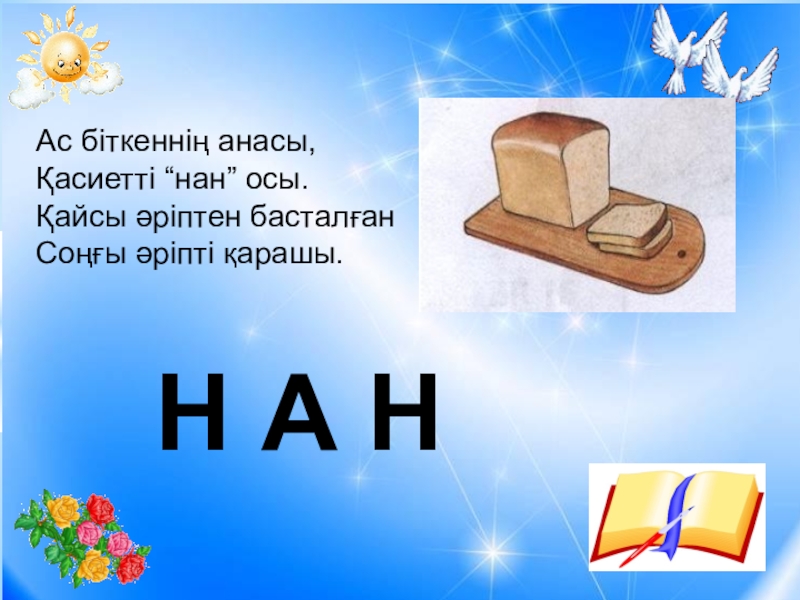 Ас біткеннің анасы, Қасиетті “нан” осы.Қайсы әріптен басталғанСоңғы әріпті қарашы.Н А Н