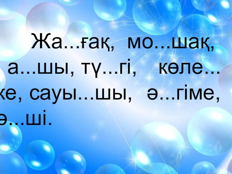 Жа...ғақ, мо...шақ, а...шы, тү...гі, көле...ке, сауы...шы, ә...гіме, ә...ші.