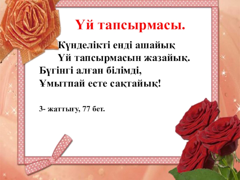 тапсырмасын жазайық. Бүгінгі алған білімді,