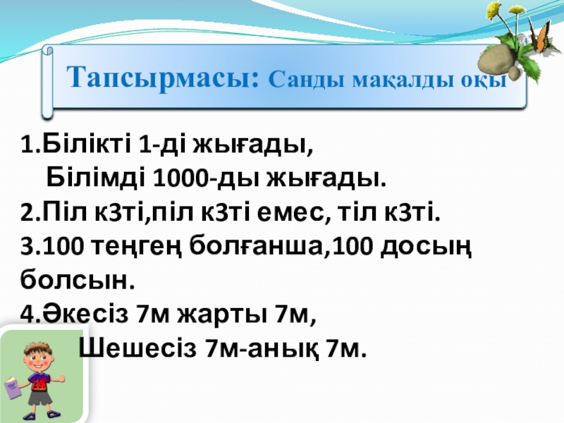 - Әрбір адам? Досым, сыныптасым. - Әрбір сабақ? Үйрену,оқу, іздену. - Әрбір ісің? Тірлік ,тірек,адамдық.