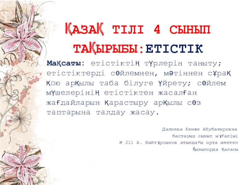 қою арқылы таба білуге үйрету; сөйлем мүшелерінің етістіктен жасалған жағдайларын қарастыру арқылы сөз таптарына талдау жасау.