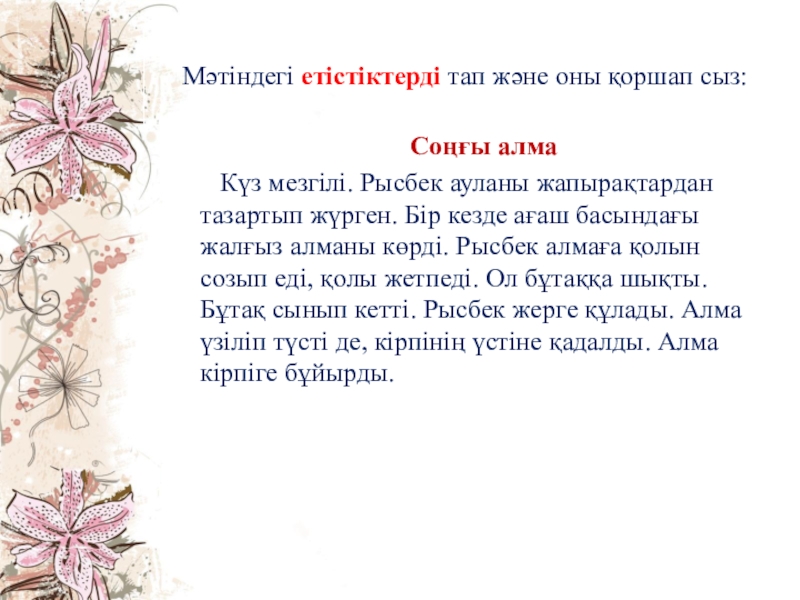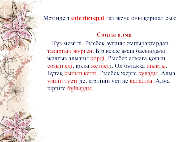 Мәтіндегі етістіктерді тап және оны қоршап сыз: