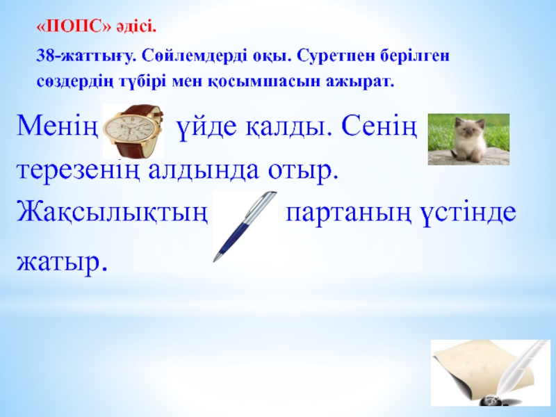 38-жаттығу. Сөйлемдерді оқы. Суретпен берілген сөздердің түбірі мен қосымшасын ажырат.