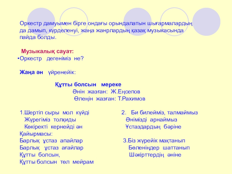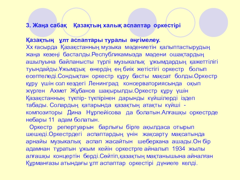 Осы жылы Қазатком атындағы ұлттық оркестр дүниеге келді.