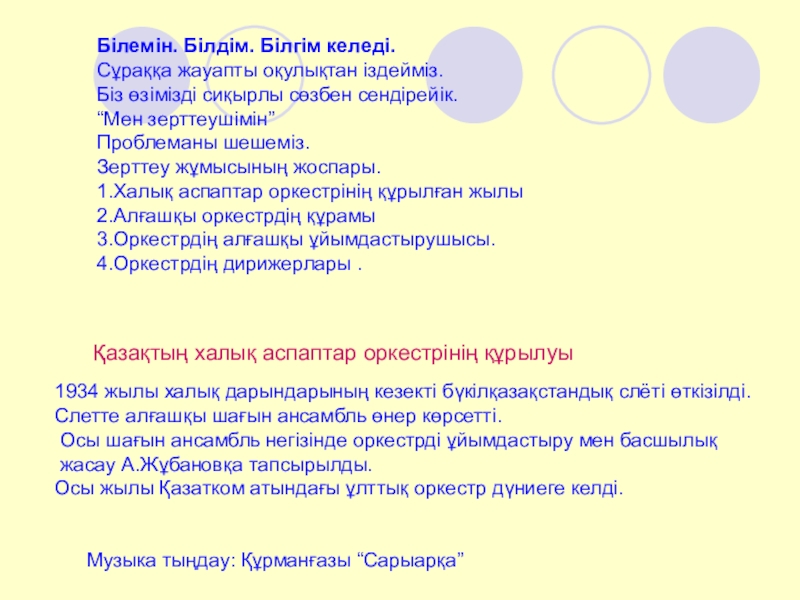 Осы шағын ансамбль негізінде оркестрді ұйымдастыру мен басшылық