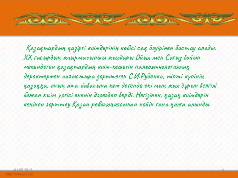 Слайд 4 Қазақтардың қазіргі киімдерінің көбісі сақ дәуірінен бастау алады.