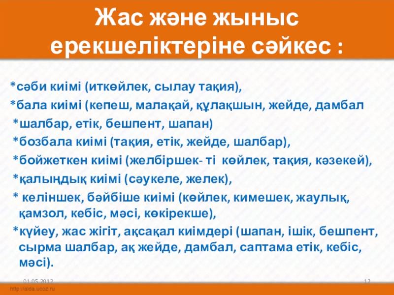 * Ұлттық киімдеріміз жайлы ырымдар түрлерін білу