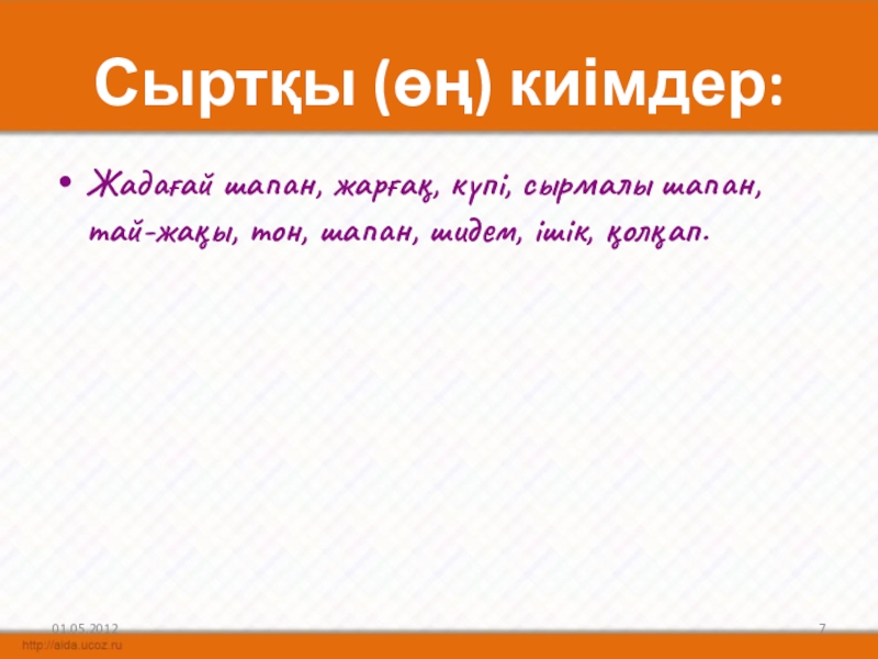 Аба, кебенек, кенеп, сырт-тық, шекпен.