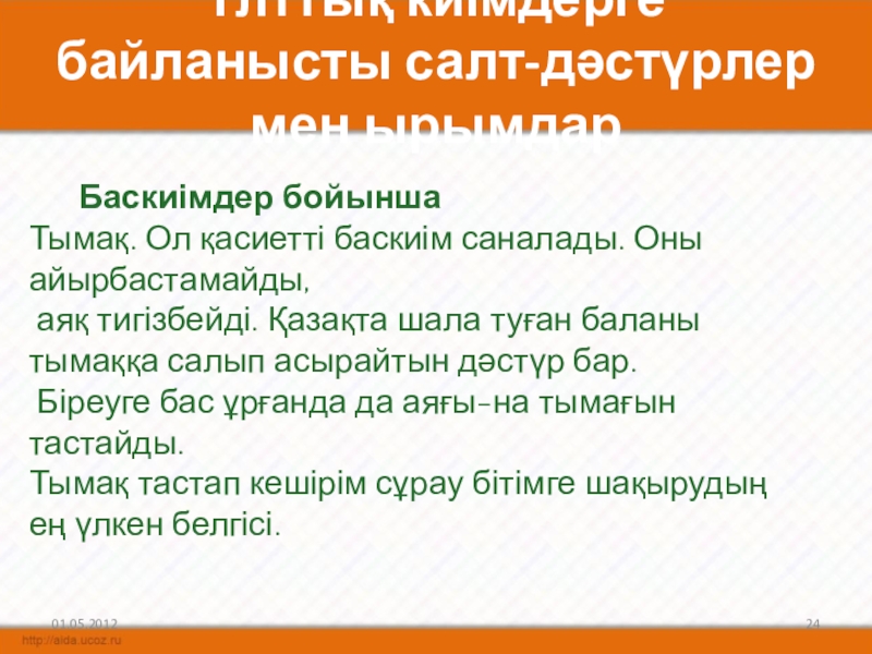 Слайд 24Ұлттық киімдерге байланысты салт-дәстүрлер мен ырымдар