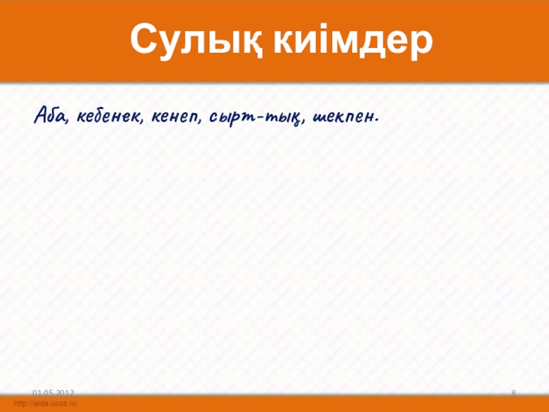 *Қазіргі кезде ұлттық киімдеріміздің үлгілері қандай екенін анықтау