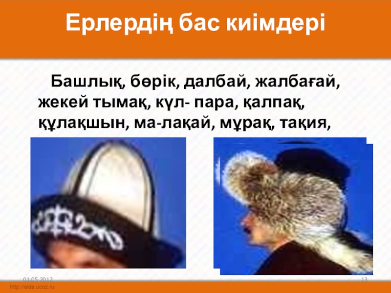 тымақ, күл- пара, қалпақ, құлақшын, ма-лақай, мұрақ, тақия, тымақ, шалма.