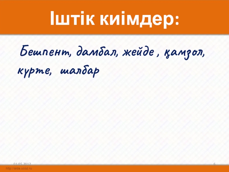 Бешпент, дамбал, жейде , қамзол, күрте, шалбар