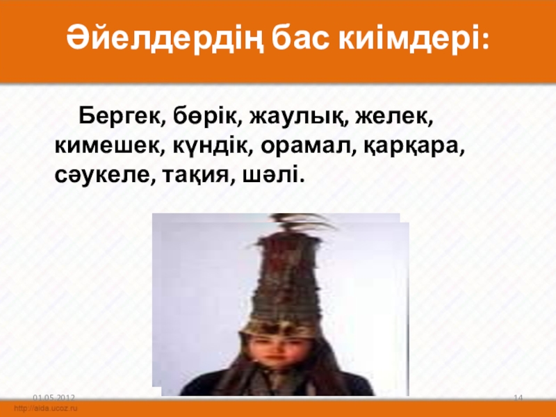 күндік, орамал, қарқара, сәукеле, тақия, шәлі.