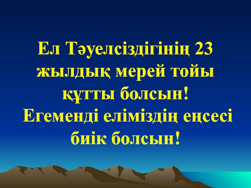 Ел Тәуелсіздігінің 23 жылдық мерей тойы құтты болсын!  Егеменді еліміздің еңсесі биік болсын!