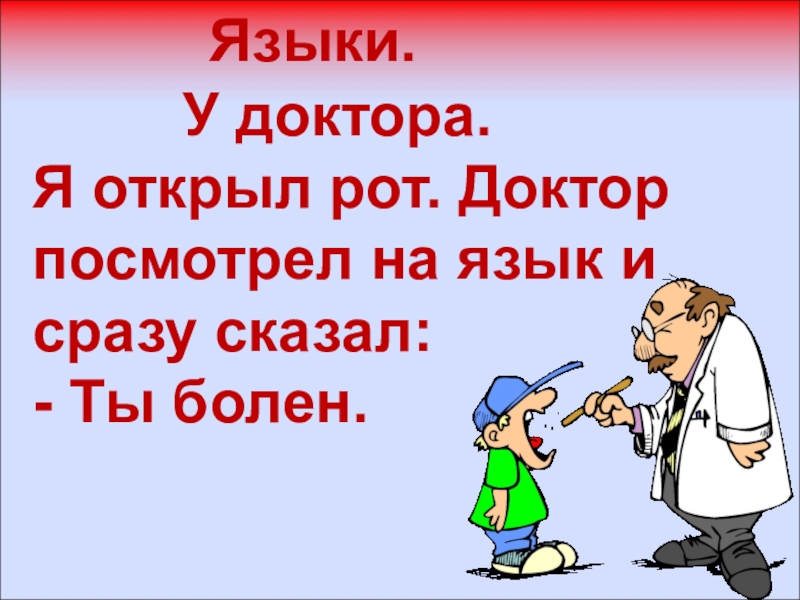У доктора.Я открыл рот. Доктор посмотрел на язык и сразу сказал: -