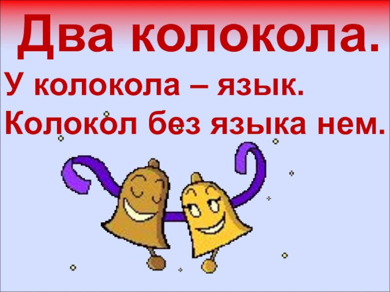 Два колокола.У колокола – язык. Колокол без языка нем.
