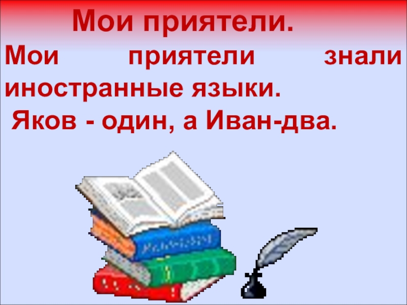 Мои приятели.Мои приятели знали иностранные языки. Яков - один, а Иван-два.
