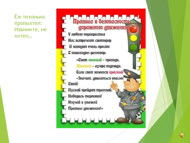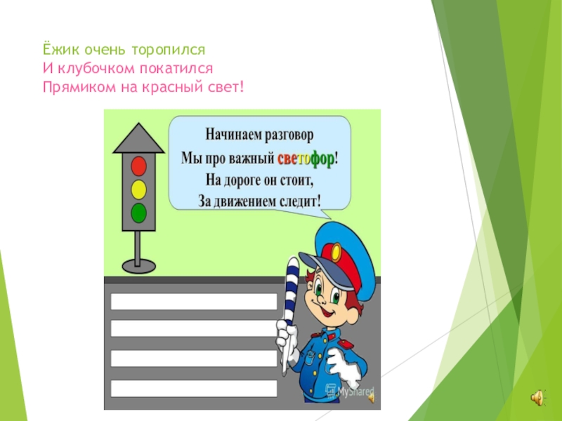 Ёжик очень торопился И клубочком покатился Прямиком на красный свет!