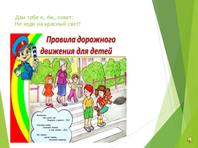 Слайд 14Дам тебе я, ёж, совет: Не ходи на красный свет!