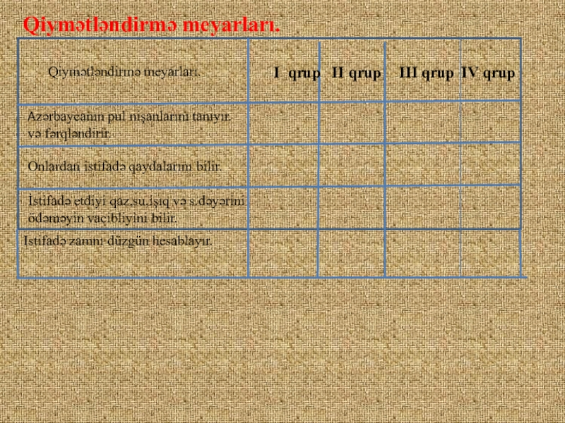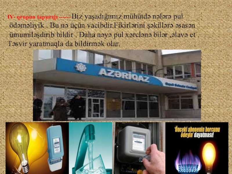 Слайд 26IV- qrupun tapşırığı -----–Biz yaşadığımız mühütdə nələrə pul