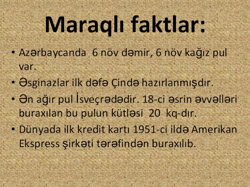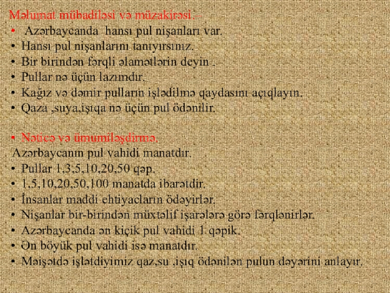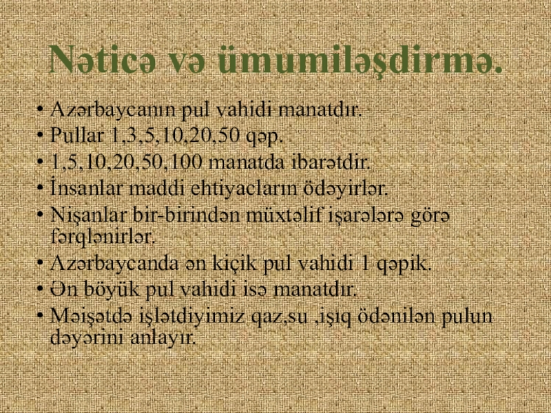 Слайд 2MÖVZU: Milli pul vahidləri.