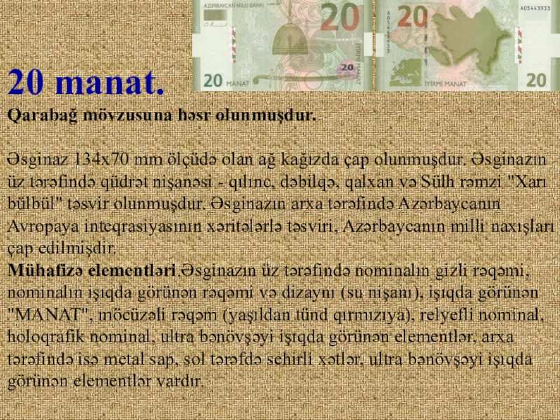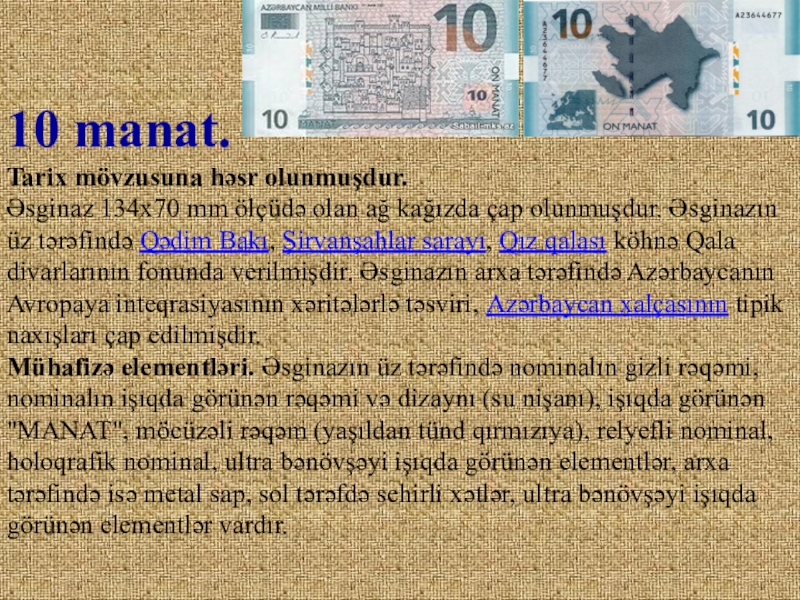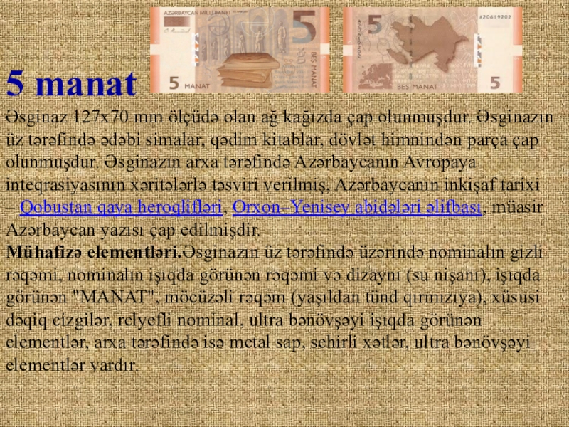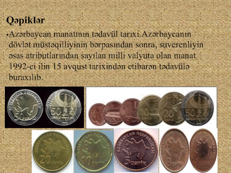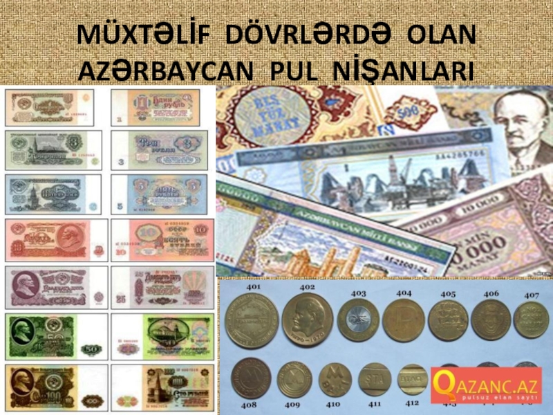 Слайд 5MÜXTƏLİF DÖVRLƏRDƏ OLAN AZƏRBAYCAN PUL NİŞANLARI