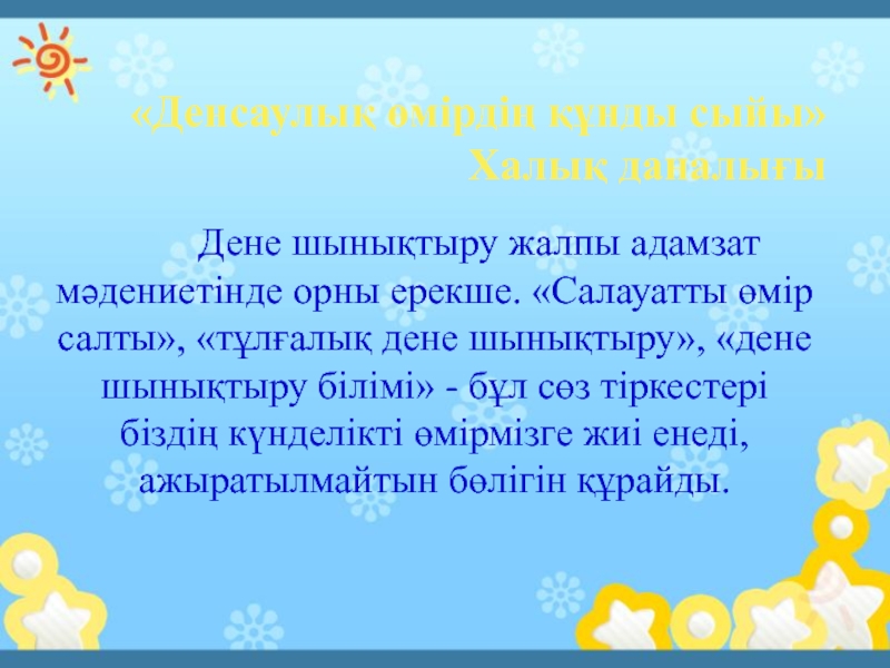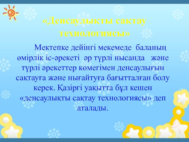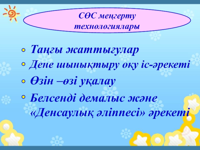 СӨС туралы қажетті білімін, білігін және дағдысын қалыптастыру