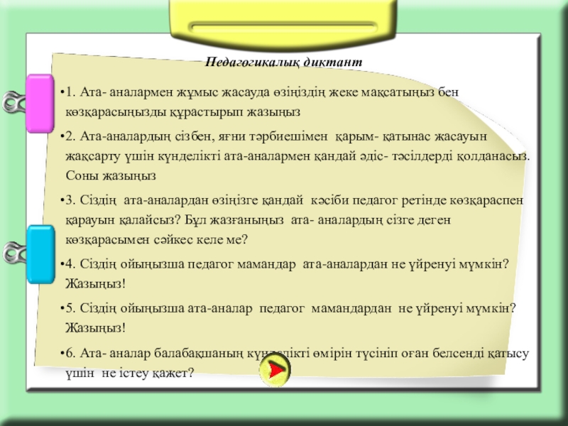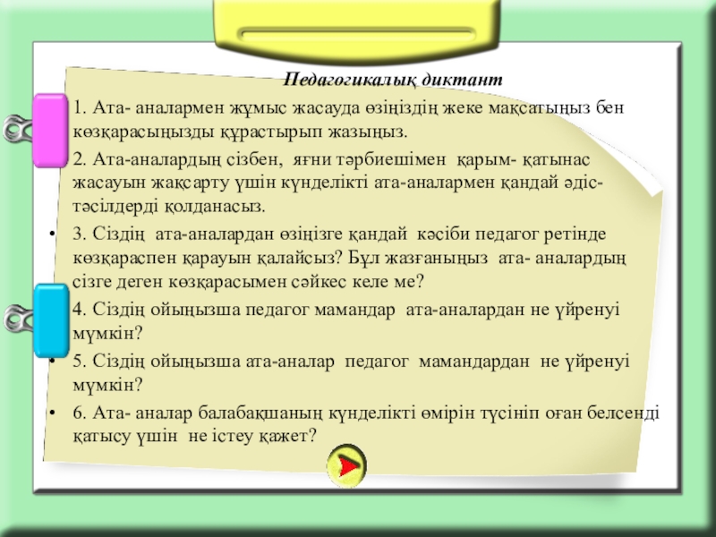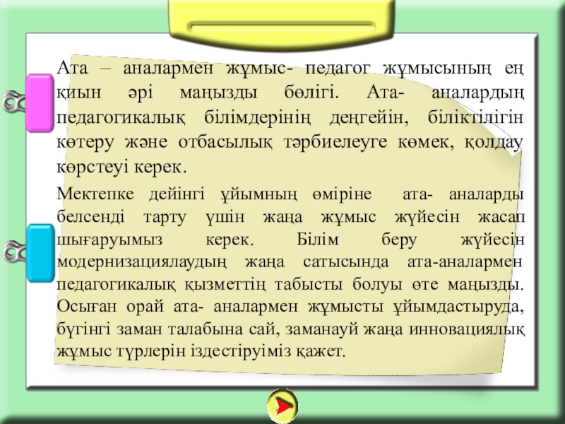 Бала тәрбиесіне байланысты атааналардың білімдерін байыту