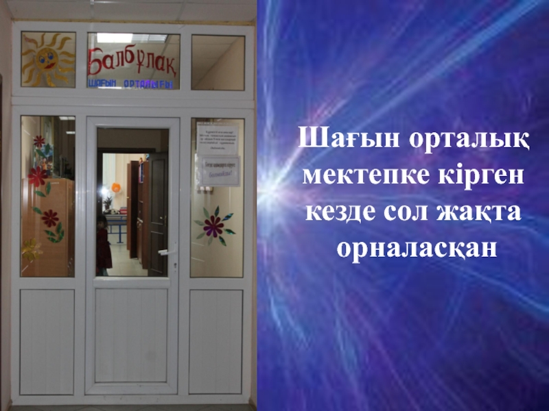 Слайд 6Шағын орталық мектепке кірген