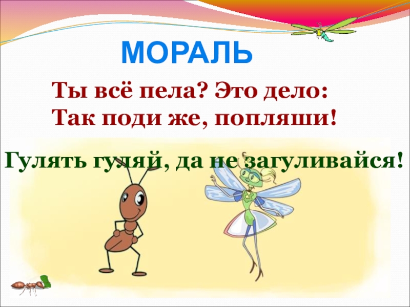 Презентация, доклад на тему басни В.И.Крылова Стрекоза и Муравей