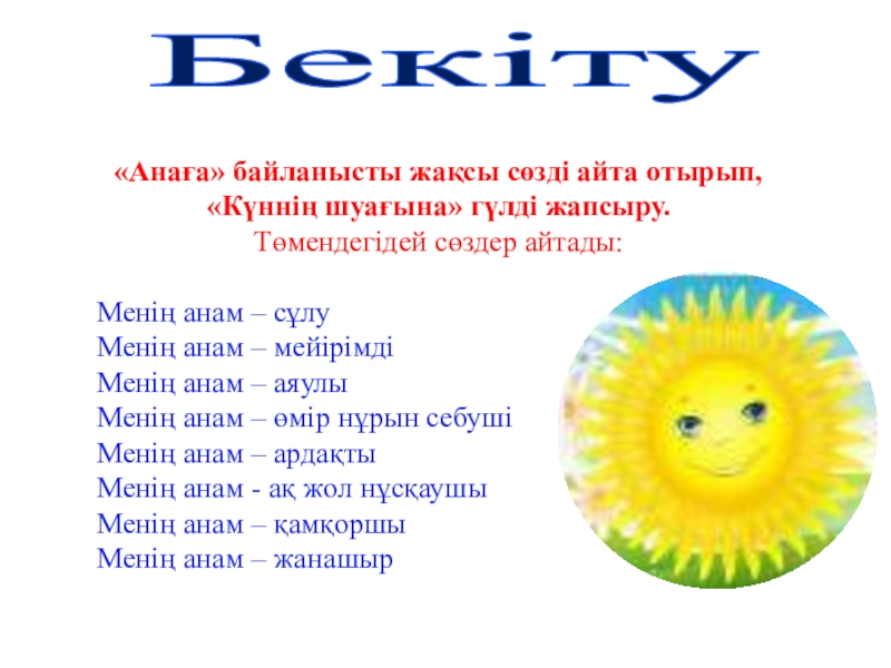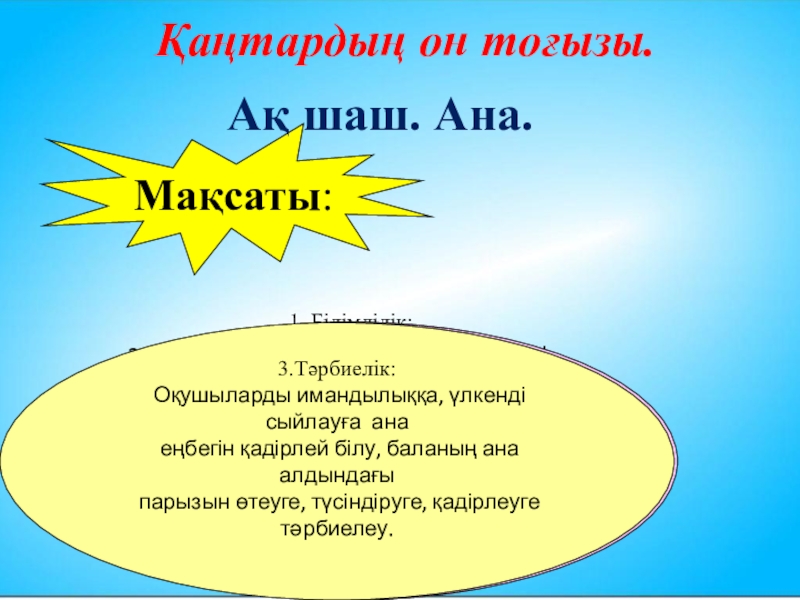парызын өтеуге, түсіндіруге, қадірлеуге тәрбиелеу.
