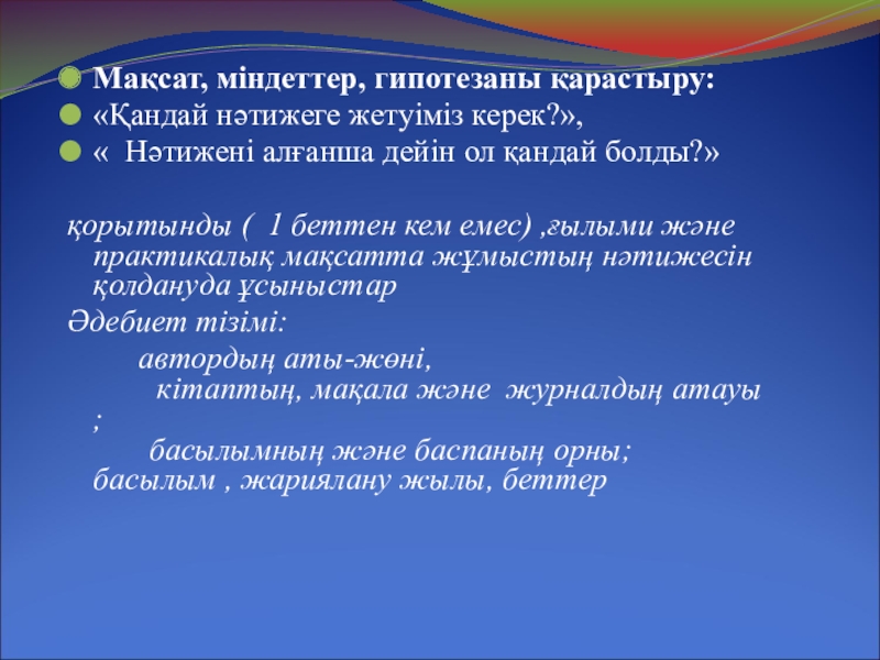 4) Кіріспе (2 беттен кем емес) : таңдап алынған тақырыптың, зерттеудің, мақсат, міндеттерінің актуалдығы