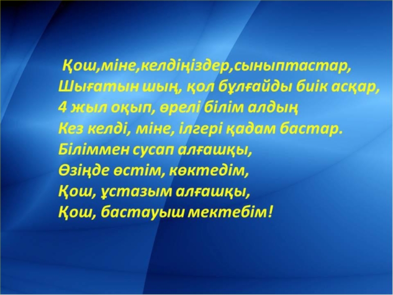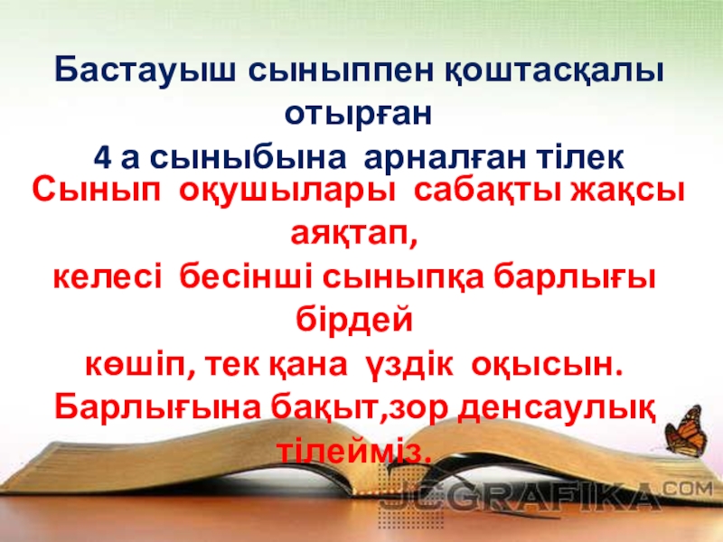 Бастауыш сыныппен қоштасқалы отырған4 а сыныбына арналған тілек Сынып оқушылары сабақты жақсы аяқтап,келесі бесінші сыныпқа барлығы бірдей