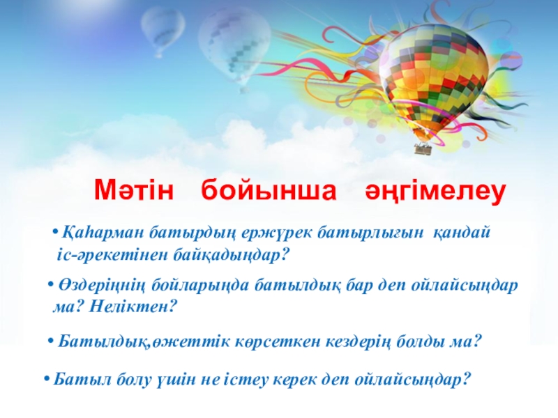 Қаһарман батырдың ержүрек батырлығын қандай іс-әрекетінен байқадыңдар?