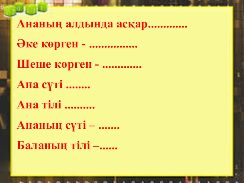 «Сандуғаш», «Маңғыстау маржандары» , «Мазасыз шақ», «Асау толқын», «Көгершіндерім»