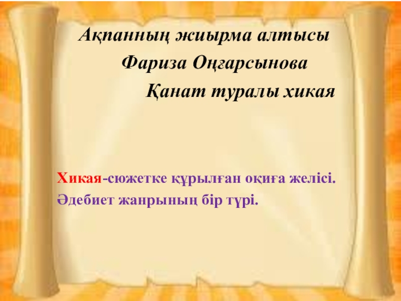 Хикая-сюжетке құрылған оқиға желісі. Әдебиет жанрының бір түрі.