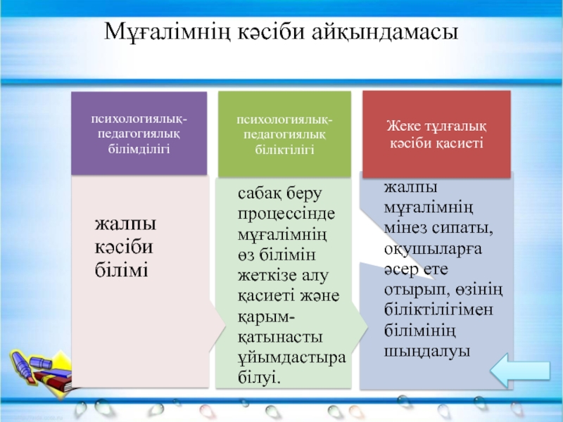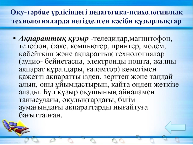 Слайд 8Оқу-тәрбие үрдісіндегі педагогика-психологиялық технологияларда негізделген кәсіби құзырлықтар