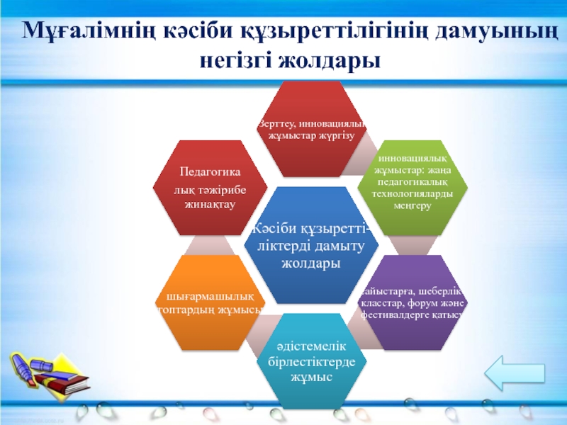 Слайд 16Мұғалімнің кәсіби құзыреттілігінің дамуының негізгі жолдары