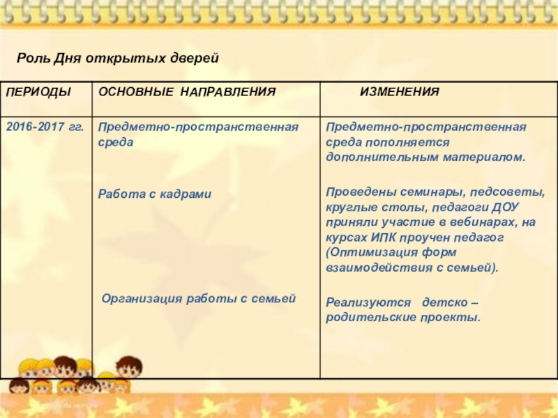 1.Выстроена система работы с родителями. Выработаны новые формы взаимодействия с