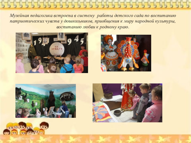 Слайд 7Музейная педагогика встроена в систему работы детского сада по воспитанию патриотических
