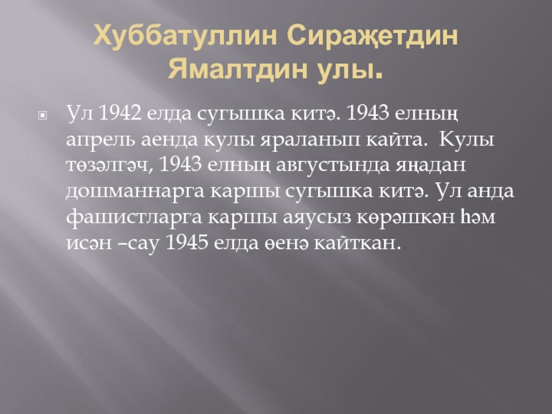 Слайд 9Хуббатуллин Сираҗетдин Ямалтдин улы.