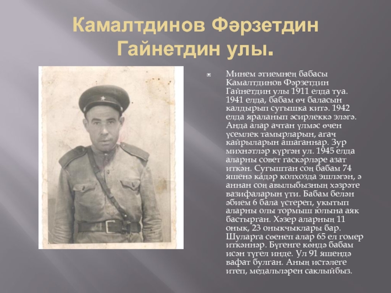 Слайд 7Камалтдинов Фәрзетдин Гайнетдин улы.