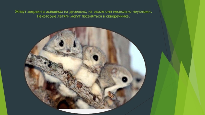Слайд 6Живут зверьки в основном на деревьях, на земле они несколько неуклюжи.