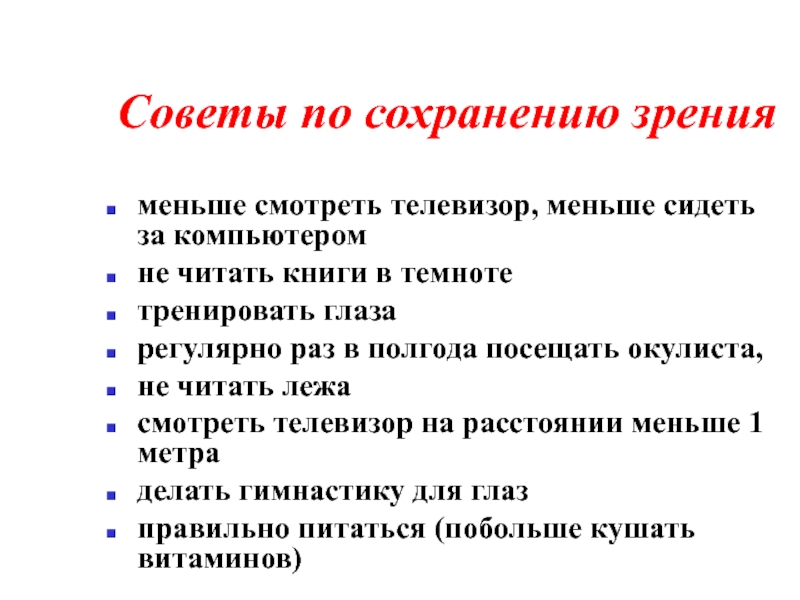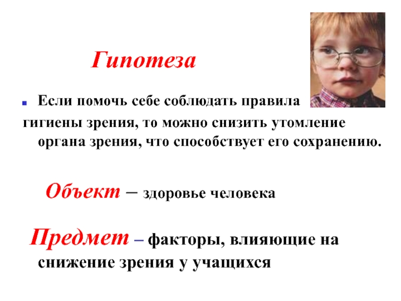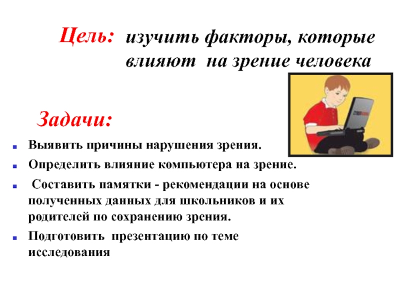 Предмет – факторы, влияющие на снижение зрения у учащихся