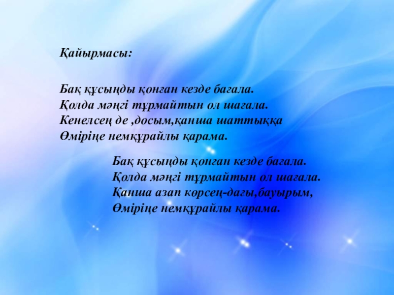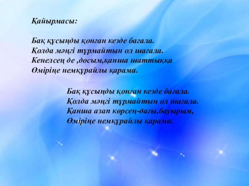 Бақ құсыңды қонған кезде бағала.