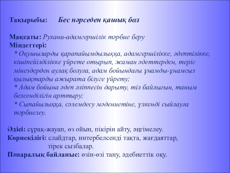 «Залымдықтан бойды аулақ ұстау