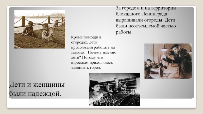 Кроме помощи в огородах, дети продолжали работать на заводах. Почему именно дети? Потому что взрослым приходилось защищать город.
