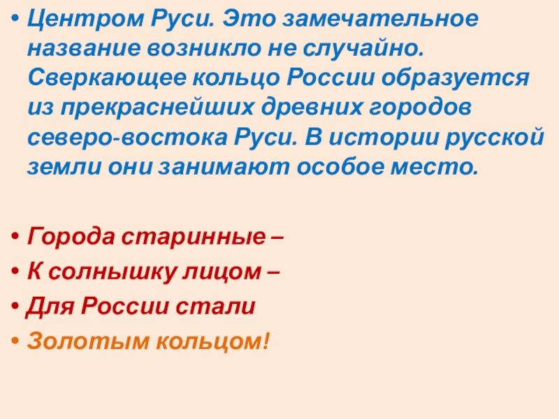 Слайд 4Центром Руси. Это замечательное название возникло не случайно. Сверкающее кольцо России